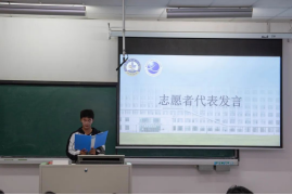 康梓萱作为学生会志愿者代表上台发言,他首先表达了成为学生会一份子的激动欣喜,并表示将与其他志愿者一道以积极的心态锐意进取,友好相处,力争高效高质地完成学生会的各项工作。