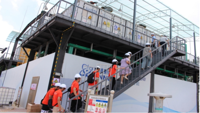 随后,成员们跟随负责人来到生产区域进行参观,负责人向成员们介绍,电站的主要设备包括储能单元、输变电设备、配电装置室和消防设施等。其中,储能系统采用100MW磷酸铁锂储能单元以及1MW全钒液流电池单元。创新使用的全钒液流单元理论上具有安全性高、可靠性好、输出功率和储能容量规模大、电解液可循环利用、对环境友好等优势。投运后可有效验证研发技术可行性,同时为液流电池新技术发展提供大量数据支持。