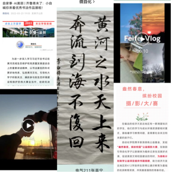 网站、官方抖音号、易班等新媒体平台与“微自化”联动互补,立足平台属性明确育人导向和主基调,春风化雨般夯实网络思政育人实效,推动网络思政育人向品牌化、专业化发展,拓展延伸思想政治教育阵地。