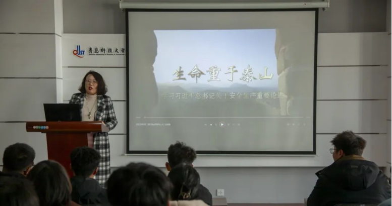 会上,辅导员刘志飞与同学们一起观看了《生命重于泰山》《红线》等宣传教育片,通过教育领域发生的事故典型案例以案说法,进一步将安全理念入脑、入心、入行。