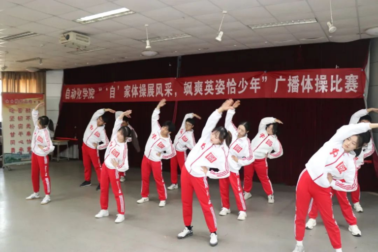 在南苑大学生体育活动中心举办“'自'家体操展风采,飒爽英姿恰少年”主题广播体操比赛。
