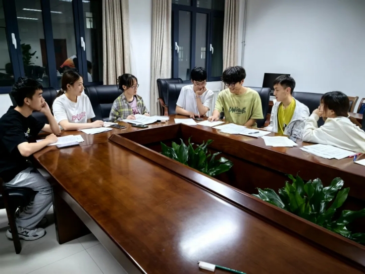 刘志飞老师带领各小组围绕计划书的核心内容展开热烈而深入的讨论,从理论框架到具体实施方案,深挖每一个细节,力求在即将到来的暑期社会实践中展现出最佳状态。