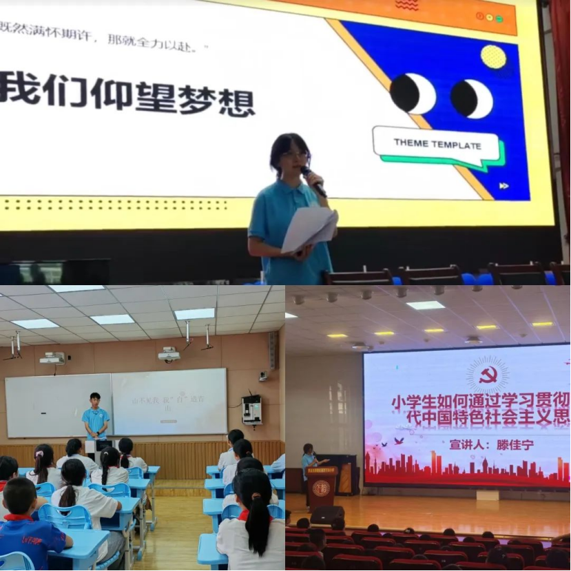 的同学们自发汇聚而成的一支活力队伍。志愿者们凭借自身专业优势与精湛技能,巧妙营造出轻松愉悦的宣讲氛围,通过精心设计的趣味课堂活动,为孩子们构筑起一座培育爱国情感的坚实桥梁。宣讲团成员提前与学校沟通,精心筹备,悉心准备道具并投入排练,确保宣讲内容生动流畅。在志愿者的耐心引导下,孩子们逐步领悟习近平新时代中国特色社会主义思想和党的二十大精神的深刻内涵。此次宣讲如同春雨滋润,有效提升了同学们的理解力,并在他们纯洁的心田播下了爱国报国的种子。