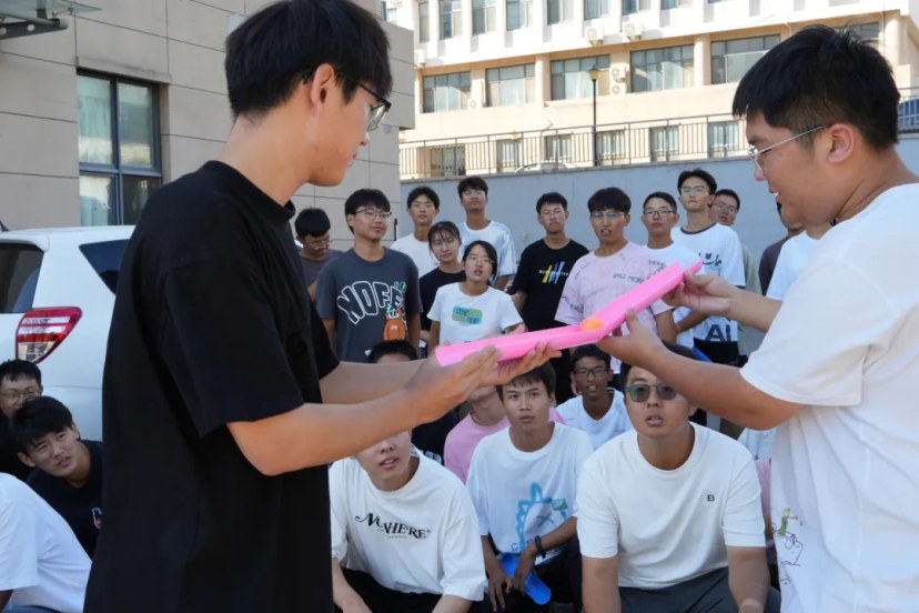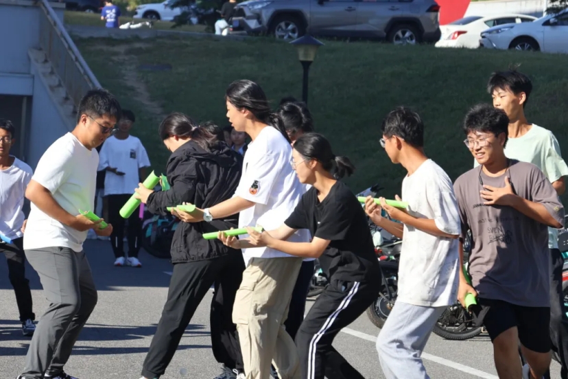 球传递接力项目为小球在自制的简易轨道上传递。每一次成功的交接都考验着参与者的专注度与团队协作能力,展现出“自”家学子们默契团结的一面。当球安全抵达终点,所有人为之欢呼雀跃,成就感油然而生。