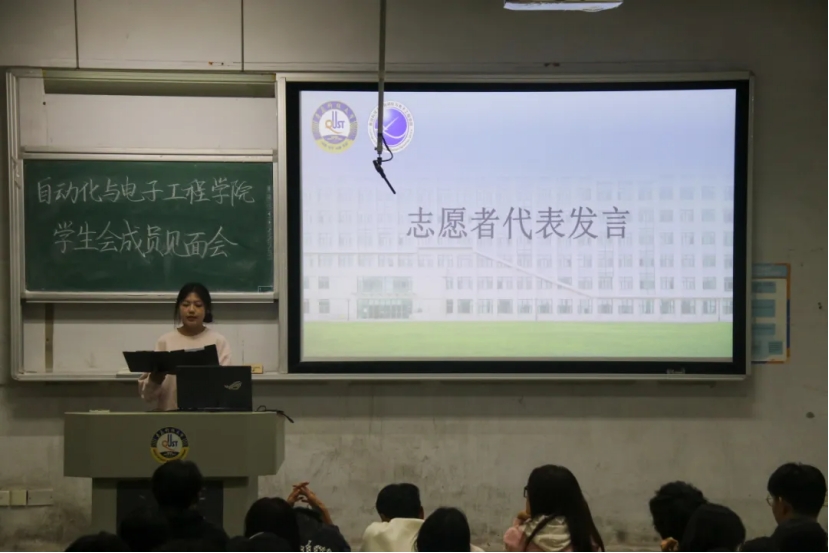 张润涵作为新生志愿者代表上台发言,她首先表达了成为学生会一份子的激动欣喜,并表示将积极响应pg电子平台