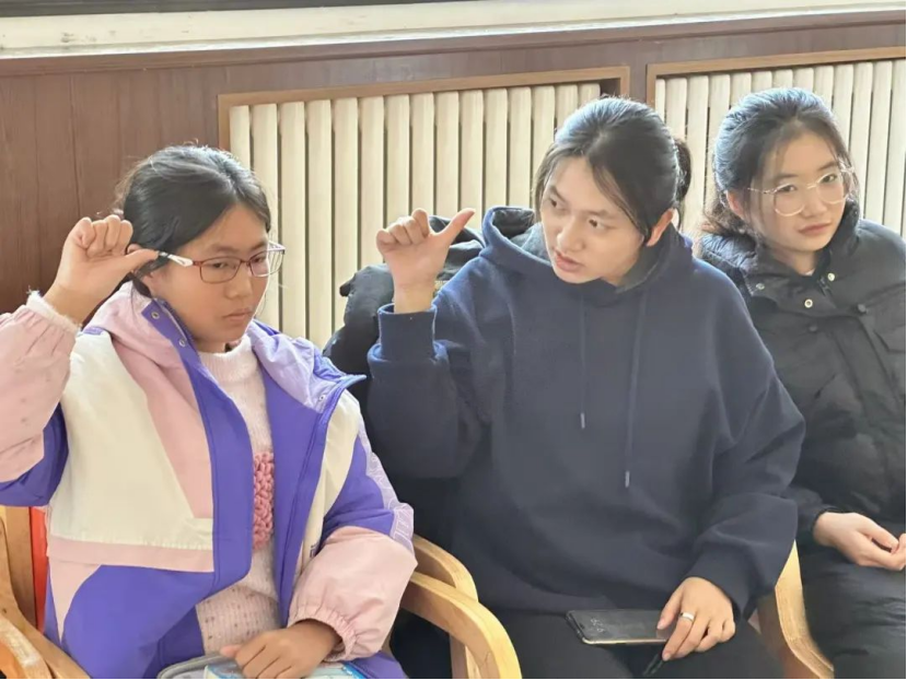 为了增进大家对手语的理解,心理协会同学特别策划了“你来比划我来猜”的互动环节。在这个游戏中,参与者分成两人一组,一位用手语表达,另一位则尝试解读。活动现场洋溢着欢声笑语,那些配合默契的团队能够迅速猜出答案,而一些小插曲也引得众人忍俊不禁。这种轻松愉快的氛围无疑加深了大家对手语的理解和记忆。