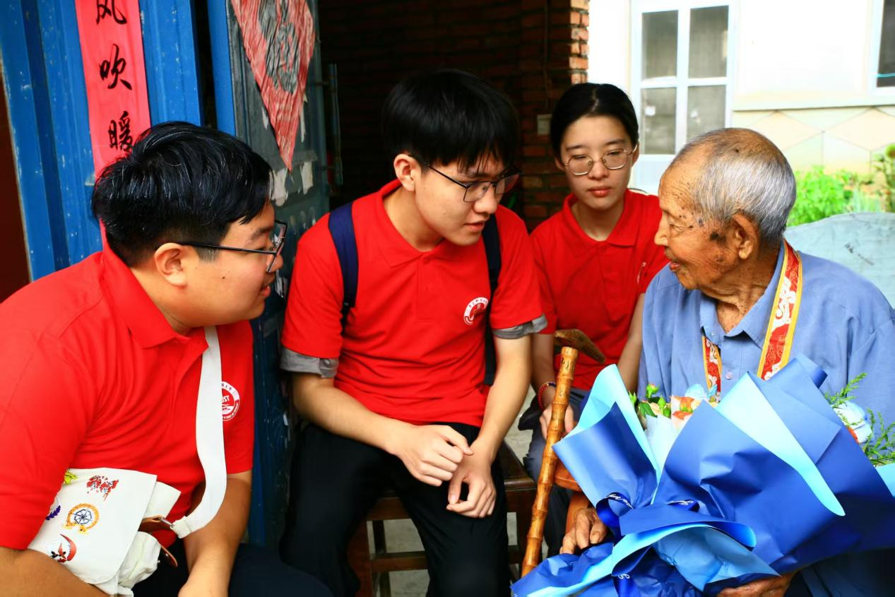 话音落下,老人努力挺直佝偻的脊背,右手颤颤巍巍却无比庄重地举至耳边,向青年们行了一个标准的军礼!这个饱含沧桑、凝聚着对牺牲战友的无尽缅怀、对红色精神忠诚坚守、对青年一代殷切期盼的军礼,像一道闪电击中了在场每一个人的心。实践团成员们全体肃立,满怀敬意地向这位功勋卓著的老英雄深深鞠躬,回以最崇高的敬意。