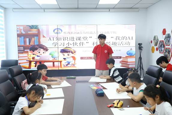 “AI同心环”助学实践团走进青岛市崂山区“听海”社区,开展以“青春智慧赋能社区,AI科技点亮童心”为主题的暑期助学营社会实践活动。