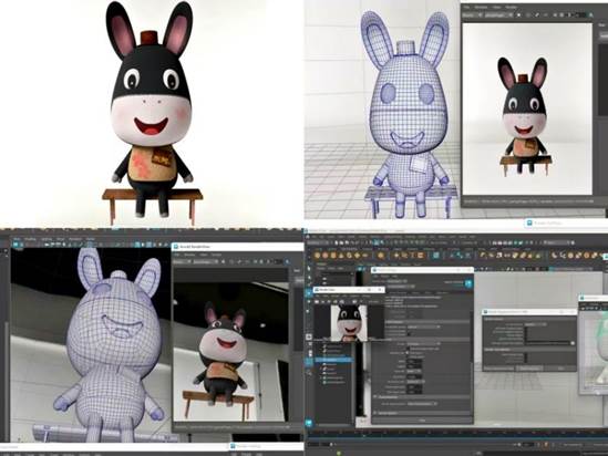 学生运用3D建模等技术设计"东阿阿胶毛驴IP形象",通过卡通符号传递品牌文化,为乡村文旅注入年轻元素,展现学校动画专业国家级一流本科专业建设点的创新实力。