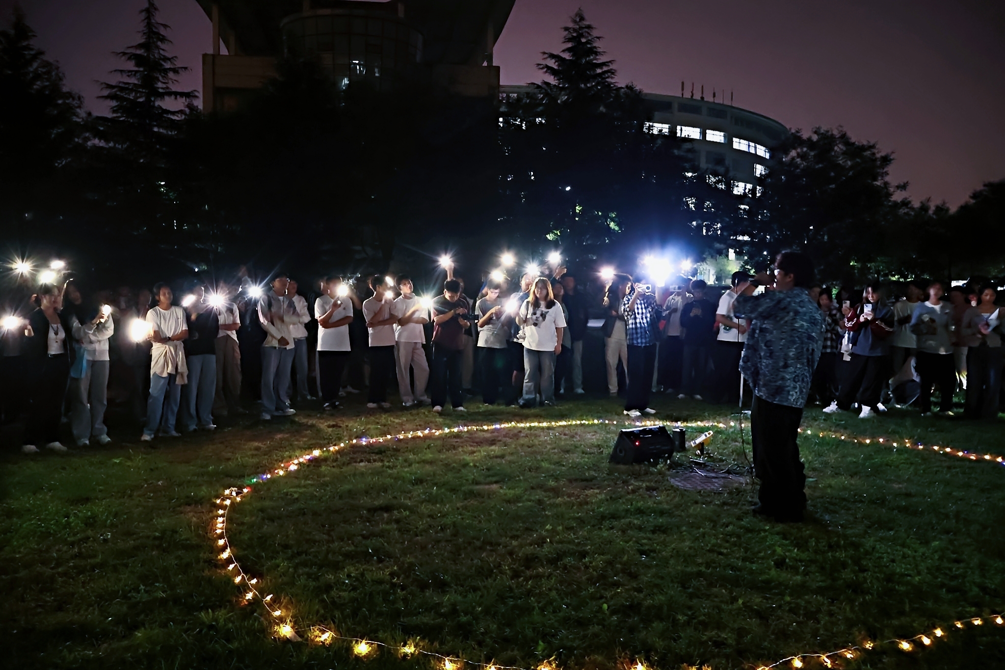 多种音乐风格在秋日草地交融,唱出当代青年不惧挑战、执着追梦的坚定信念,听众或席地聆听,或轻声跟唱,在乐声中感受“自”家的多元文化。音乐,晚风,韶华如驶同“新”行;青春,有你,时光荏苒“自”相伴。炙热的青春,热烈的十八岁,从现在开始,在未来延续!