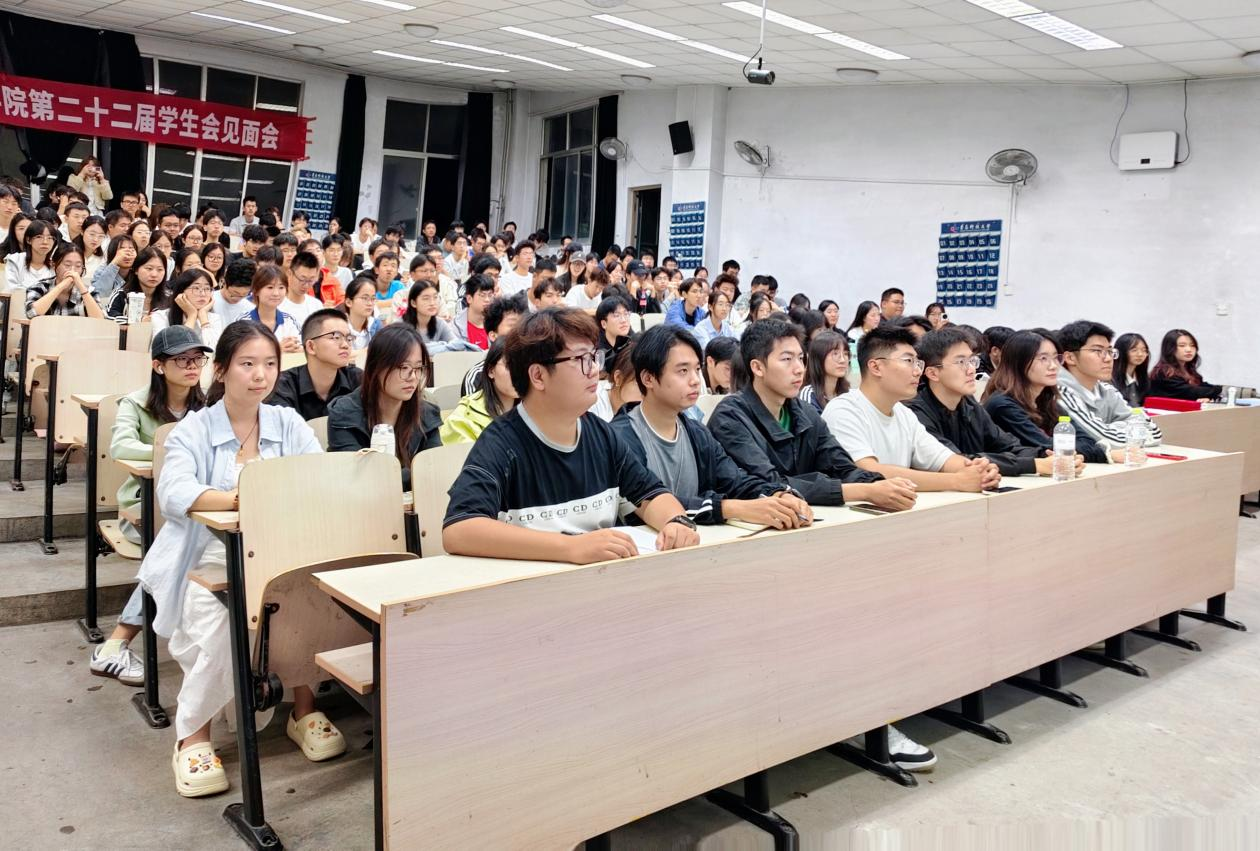 学生会于弘毅楼E102举行第二十二届学生会见面会。23级辅导员刘志飞、学生会主席团成员、各部门负责人及全体学生会成员参加此次会议。