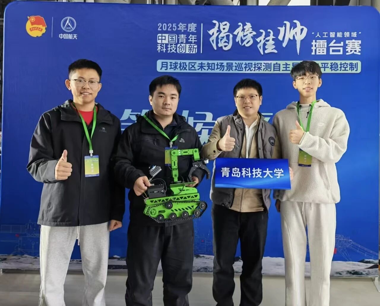 的项目《月球极区自主导航与作业机器人》在2025年度中国青年科技创新“揭榜挂帅”擂台赛“人工智能领域”主擂台赛中,从众多一流高校中突出重围,最终以全国第八名的优异成绩斩获国家二等奖。