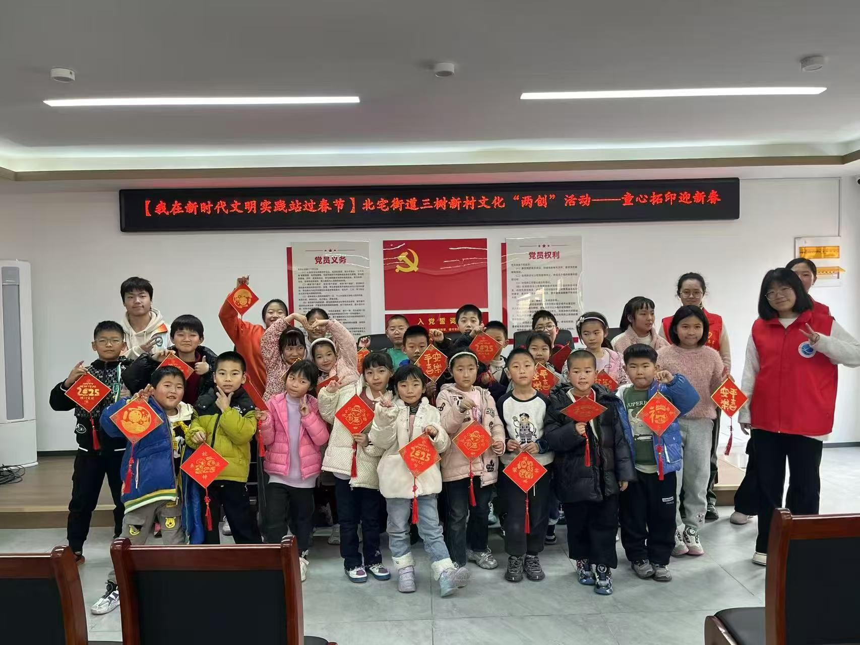 2025年一月,电气244团支部“北宅”实践队迎着寒风出发,走进北宅街道“童心拓印迎新春”的活动现场。红纸铺展,木拓轻响,孩子们专注地将“福”字印入纸中,也将欢声笑语刻进温暖的记忆里。雪花拂过脸颊,如同现实的触角,提醒着队员们:真正的课题不止于实验室的电路与代码,更藏在千家万户的灯火里,映在一张张期盼新春的稚嫩笑脸上。他们蹲下身记录、倾听、陪伴,手指冻得通红,却第一次如此清晰地触摸到“责任”的形状——原来,“被需要”正是青春最坚实的脊梁。