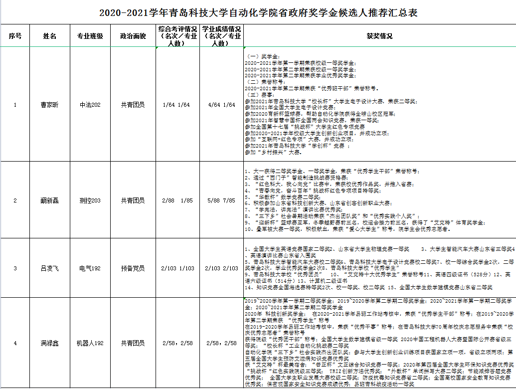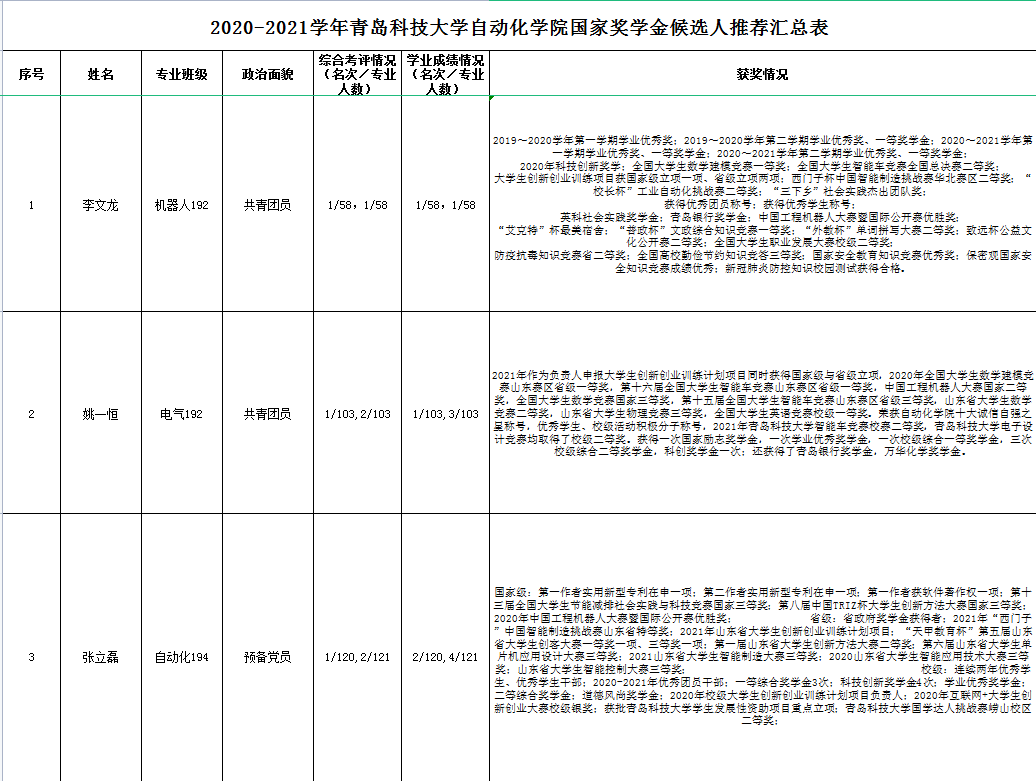 根据青岛科技大学《关于评审2020-2021学年山东省国家奖学金、省政府奖学金的通知》,经由学生本人提出申请并提交相关证明材料后,pg电子平台 评审委员会坚持公开、公平、公正、择优的原则,按照申请人的综合情况和学校下达的名额进行了评审。