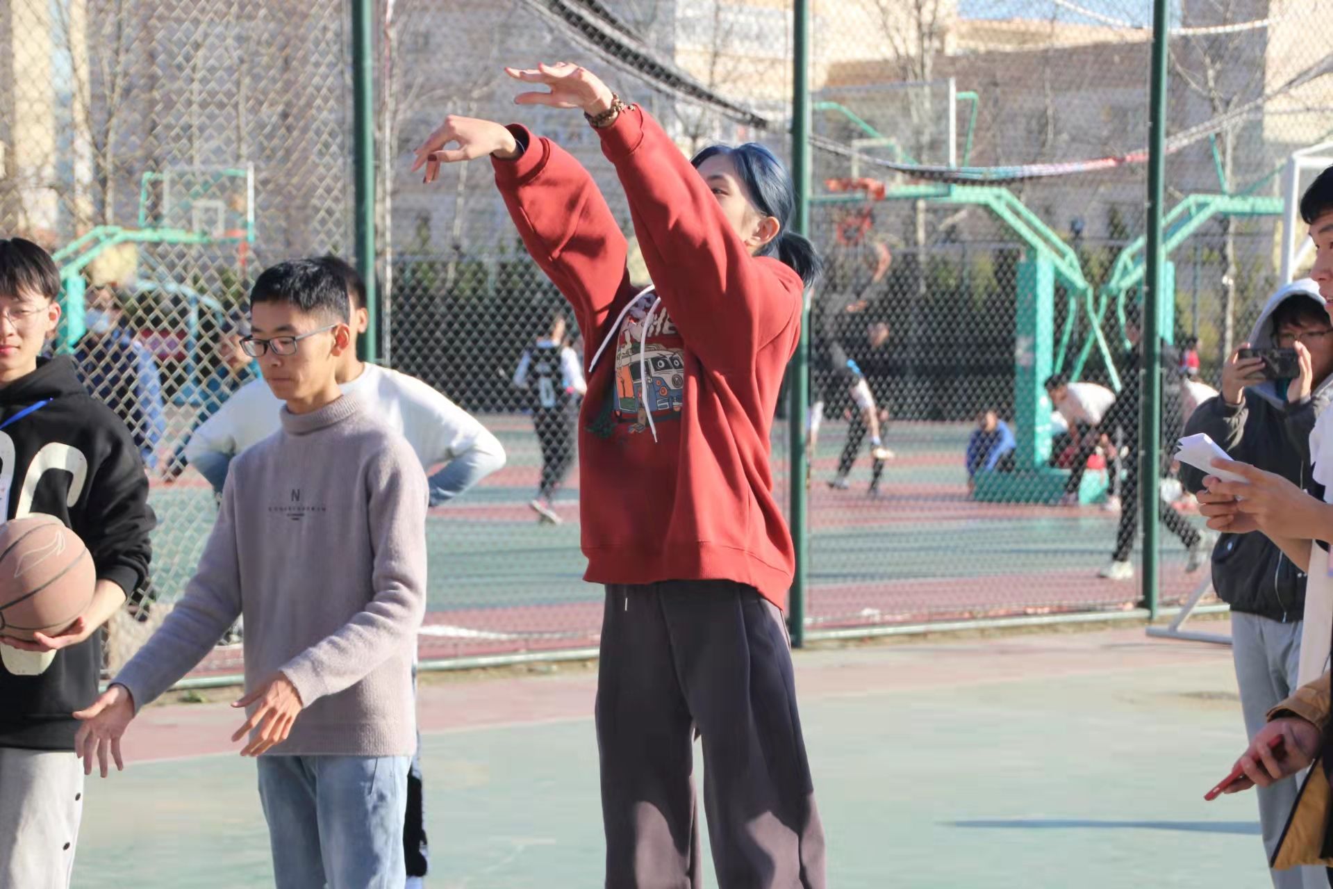 电信212班于12月8日在崂山校区南苑操场举办了班级篮球比赛。同时为确保班级里的每个人都能参与到比赛当中,感受篮球运动的魅力,比赛被分为不同的项目进行。