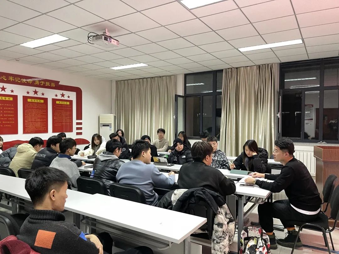 张郁浩老师在会议中带领大家回顾本学期学生会举办的各项活动,肯定各部门的辛苦付出,同时指明活动开展过程中的不足之处,最后他向大家提出期望:注重专业学习,警惕低级错误,善于总结复盘,以更加认真的态度完成各项工作。