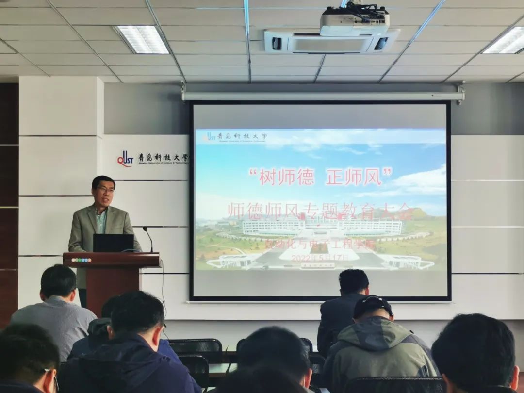 党委书记吕德谦传达了《青岛科技大学“树师德 正师风”专项整治活动实施方案》的文件精神,结合近年来部分高校师德师风建设典型案例,强调全体教职工要统一思想,认真学习习近平总书记关于师德师风和教师队伍建设的系列重要讲话精神,始终把立德树人根本任务记在心上、扛在肩上,努力打造一支政治素质过硬、业务能力精湛、育人水平高超的新时代高素质的教师队伍。与会教职工现场签订《青岛科技大学教师师德承诺书》。