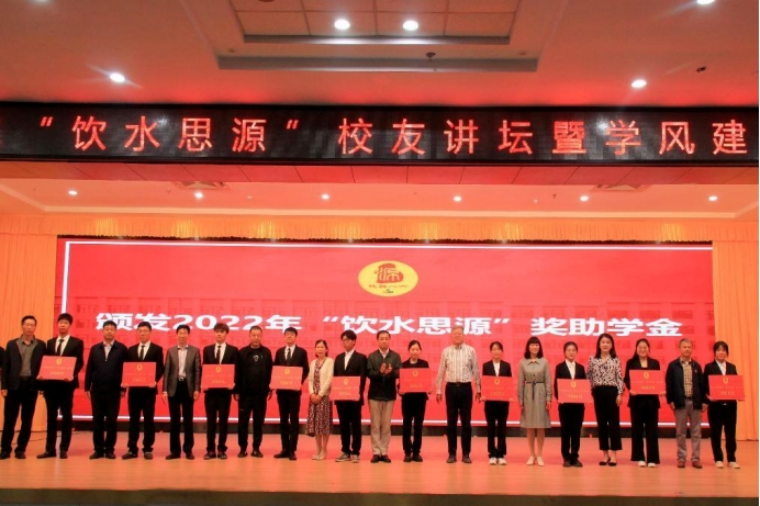 与会领导和校友为2022年“饮水思源”奖助学金获奖同学进行颁奖。