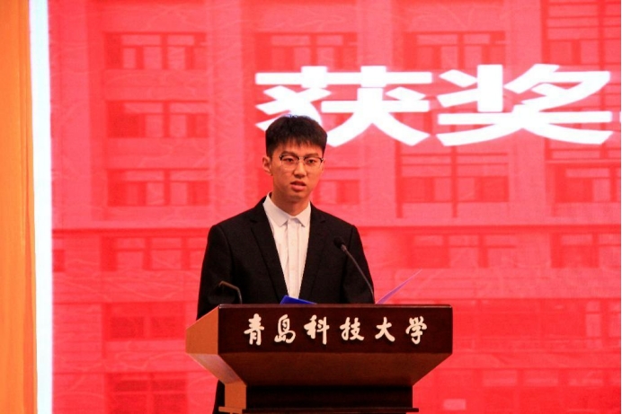获奖学生代表测控192范家兴表达了对化自86级校友的感激之情,同时号召同学们向身边优秀同学学习,在见贤思齐中肯定自我,成就自我。
