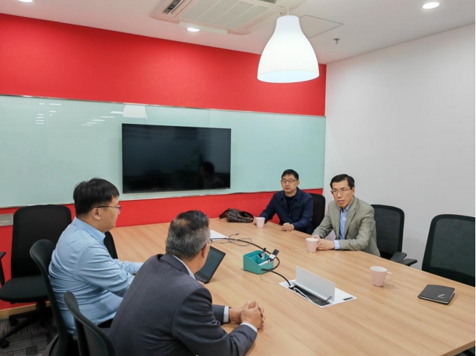 党委书记吕德谦、副院长陈为、测控教研室单宝明教授与公司技术总监及车间主任围绕产品智能化和智能化生产、毕业生情况、企业用人等情况进行深入交流。