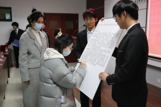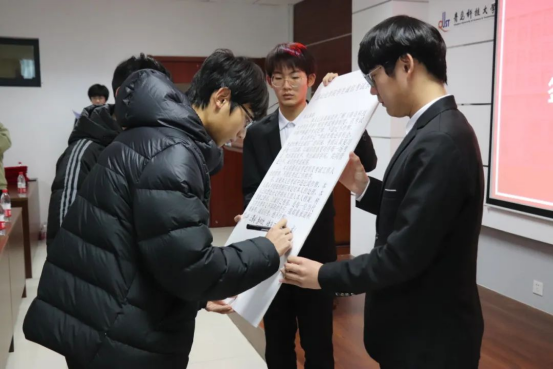 进一步加强对学生的诚信教育,严肃考风考纪,各年级学生代表签署诚信考试承诺书,引导学生争做有德行、守契约、讲诚信的科大人。