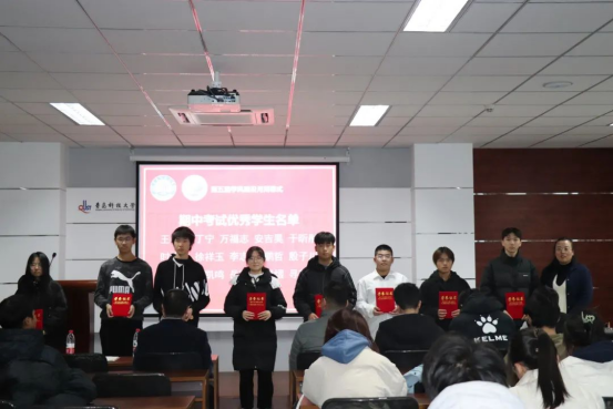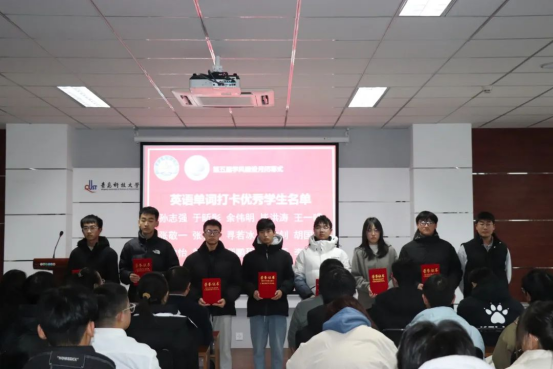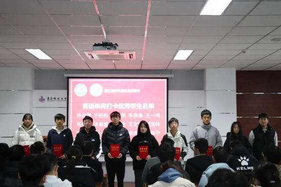 本届学风建设月系列活动中涌现出许多勤学善思、表现突出的学子。闭幕式上,郭蒙蒙为期中考试优秀学生颁奖,刘志飞为单词打卡活动中表现突出的学生颁奖。
