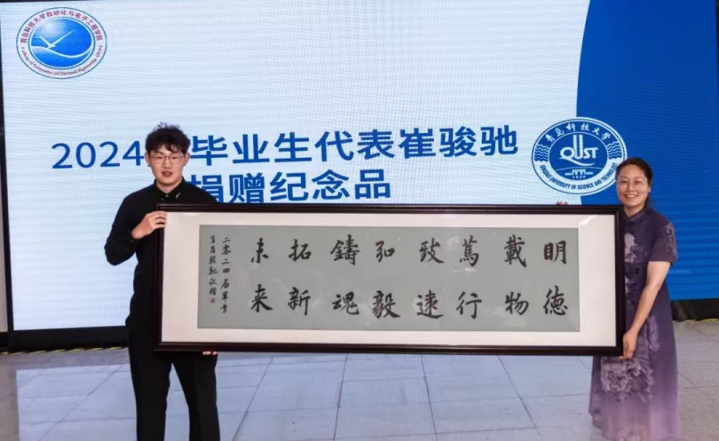 接受了2024届毕业生代表崔骏驰捐赠的书法纪念品。毕业生们依次登上舞台,用一首首歌曲倾诉着大学时光的点点滴滴。从激昂的励志金曲到舒缓的抒情民谣,每一个音符都饱含着他们对校园生活的眷恋、对师恩的感激以及对未来的憧憬。