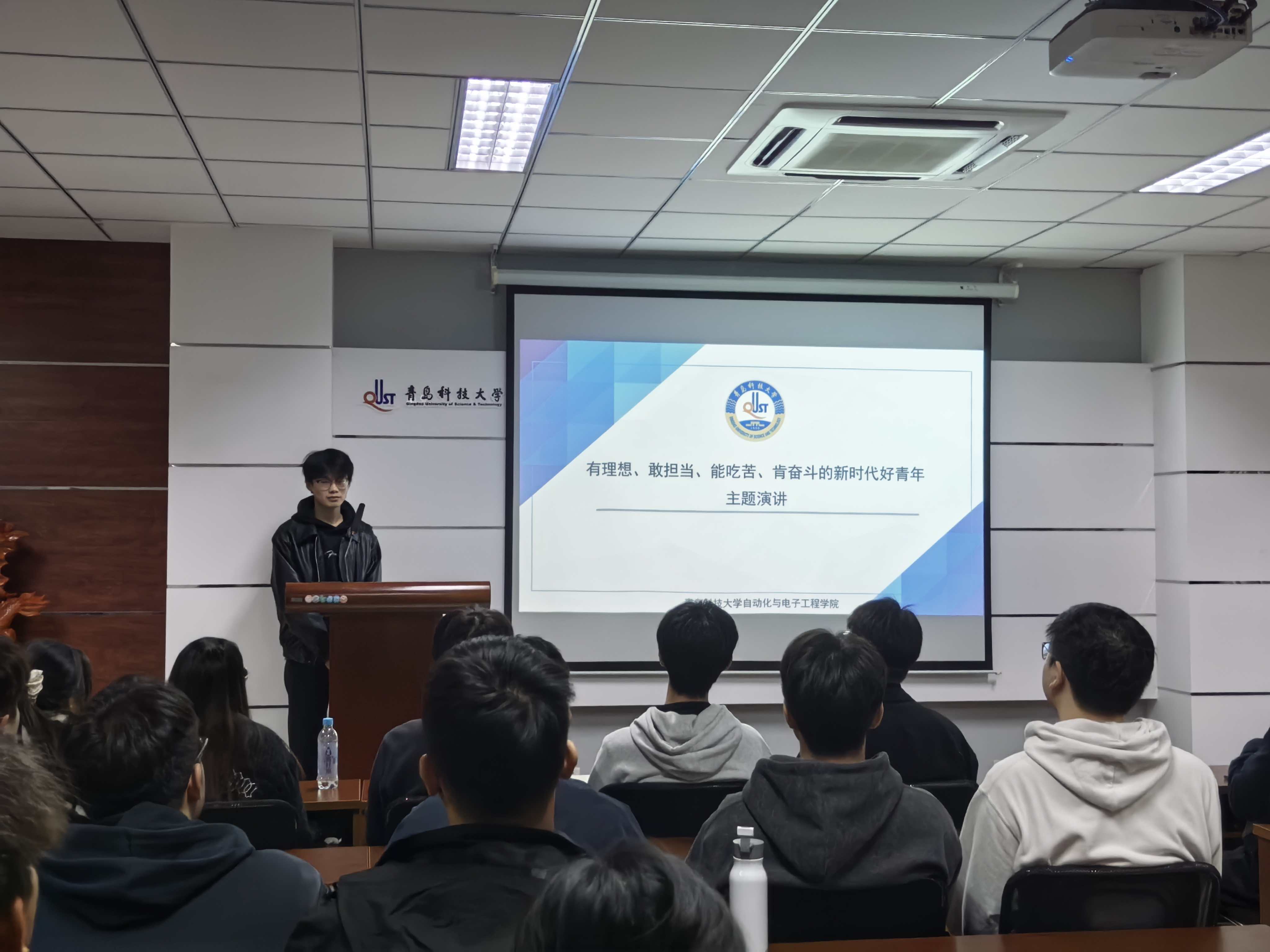 活动中,主持人围绕“青年兴则国家兴,青年强则民族强”的核心主旨展开,系统阐释新时代青年“以理想为帆、担当为桨、吃苦为粮、奋斗为舵”的成长路径。在典型案例分享环节,90后科学家刘明侦放弃海外高薪携成果归国助力科技发展的赤诚,花江峡谷大桥平均年龄28岁的青年建设团队挑战天堑的坚守,用牙齿咬笔助农增收的李娟逆境中的坚韧,以及历经伤病仍勇夺冬奥金牌的苏翊鸣身上的拼搏力量,这些鲜活事例引发在场学子强烈共鸣。互动交流中,研究生们结合自身科研经历,畅谈在自动化领域深耕的理想追求,纷纷表示将以榜样为镜,把学术探索与国家需求紧密结合。