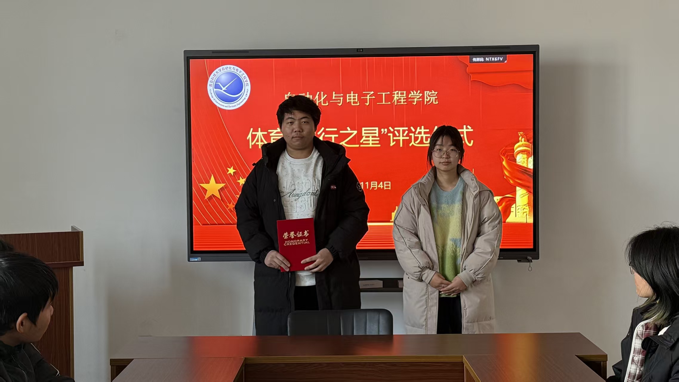本次评选以“智体并举、知行合一”为核心,前期通过班级推荐与个人申报相结合的方式,筛选出15名候选人进入终评。评选现场设置风采展示、技能答辩、互动问答三个环节,候选人围绕体育竞技成绩、运动精神践行、智能体育创新实践等方面展开汇报:既有在省市级体育赛事中斩获佳绩的竞技能手,也有带领班级斩获运动会团体奖项的团队骨干,更有将自动化专业知识融入运动训练的创新实践者,他们用详实的数据、生动的案例展现了“自化学子”在体育领域的执着追求与智慧担当。